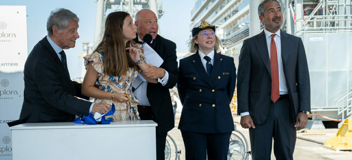MONFALCONE – Il futuro delle navi prende forma compiuta. La consegna di Explora I, prima nave di Explora Journeys (divisione crociere del Gruppo Msc) segna il debutto del brand luxury e di una nuova era di vacanze in mare. «Iniziamo già a sentire l’anima della nave», dice il comandante Serena Melani durante la cerimonia il 20 luglio nello stabilimento Fincantieri di Monfalcone, mentre riceve dal direttore del cantiere l’ampolla d’acqua, simbolo della consegna. «Ringrazio la famiglia Aponte che ci permette di portare in mare questa “bambina”; è appena nata e crescerà».