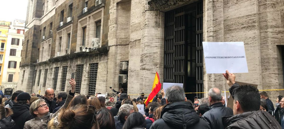 Le agenzie di viaggi italiane scendono in piazza davanti al Mise in via Molise 2, a Roma: un movimento partito dalla base che ha visto aderire associazioni e comitati di settore per chiedere aiuto al governo contro la psicosi coronavirus che sta mettendo in ginocchio il settore turistico. Sono un migliaio, al momento, i partecipanti alla manifestazione.