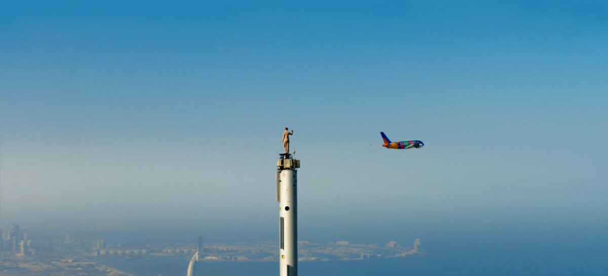 La coraggiosa stuntman torna sulla cima del Burj Khalifa di Emaar, sollevando cartelli con un invito a visitare Expo 2020 Dubai, sull’iconico Emirates A380. Quindi fa un cenno all’aereo, che si libra sullo sfondo mentre si erge sulla guglia dell’edificio più alto del mondo. Lo spot presenta viste aeree dinamiche di Dubai e del suo skyline e culmina in un passaggio di volo sulla cupola di Al Wasl dell’Expo 2020 di Dubai. Qui le immagini del backstage.